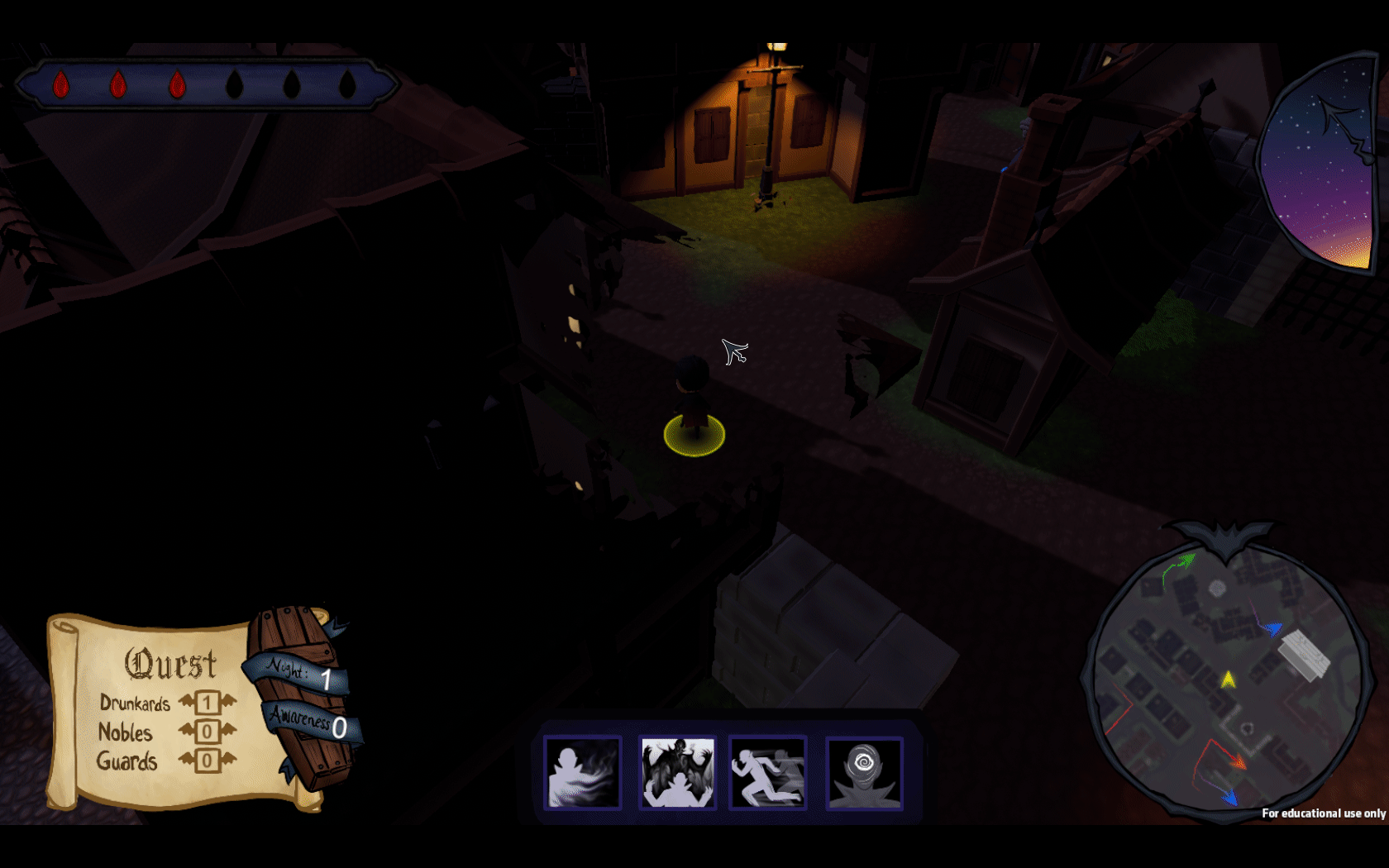 Child of Night was pitched as a 2nd year major project and is a casual top-down 3D stealth game where the player - as a vampire - must sneak around the town and consume their victims before the sun rises.
